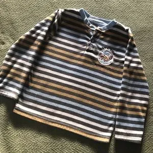 Light blue, tan and gray stripes. “Save our Animals” embroidered.