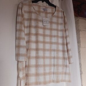Stylish plaid long sleeve top in white and tan. Perfect for casual wear.