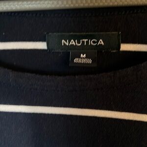 Nautica Navy & White Striped 3/4 Sleeve Dress Size Medium