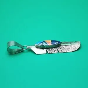 G. Howe Navajo Sterling Feather Pendant with Multi-stone Inlay