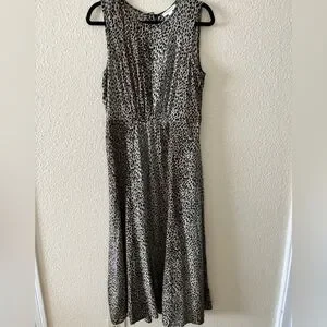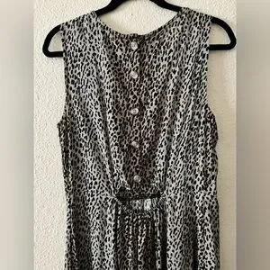 Super cute leopard print dress by beachlunchlounge collection Size small 5 button back closure Elastic cinches waist a finger front and back Midi/ankle length High heck Little cut out on lower back Length 48”