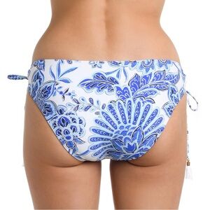NWT La Blanca Blue & White Beyond The Pacific Side Tie Hipster Bikini Bottom