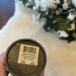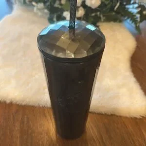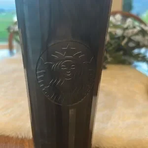 New Starbucks. Round container with a gray lid. Compact and portable. 24 oz