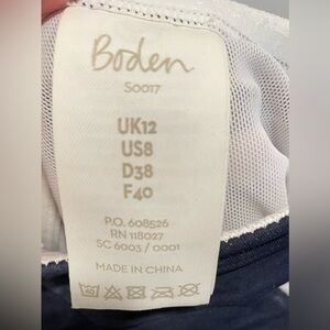 Embrace the classic nautical style with this barely worn, Boden one-piece swimsuit with tomato red, blue and white stripes.
