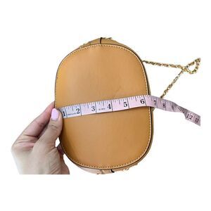 Beautiful bag. Camel brown and gold color. In great condition. Had a small smudge and some splitting on the strap.