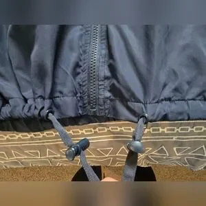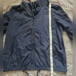 Great condition. Size medium. Rainbow stripes going on the arms. Zipper closure. Drawstring hoodie. Thumbholes. Lightweight. Drawcord cinched waist detail. Side zipper pockets. Inner mesh lining. Logo on hoodie. Measurements and fabric content listed above in pictures.