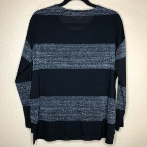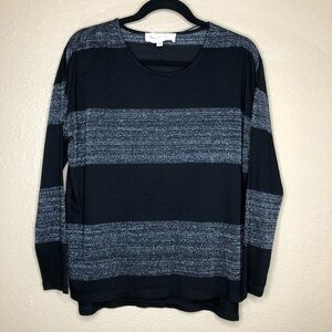 VINCE CAMUTO Long Sleeved Striped Top features a semi-sheer black and metallic silver striped design that catches the light in a flirty way. This is a great layering piece for the fall and winter and would look stunning for the holidays! Top is by the Two by Vince Camuto lone and is in EXCELLENT condition. Size XS. Comment below with any questions.