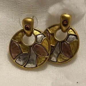 Chico’s Gold and Silver Mosaic Door Knocker Earrings