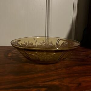 1930’s Federal Sharon Cabbage Rose Depression Glass Bowl Amber Yellow Vintage