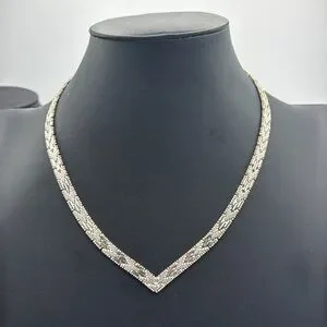 Absolutely stunning all sterling v necklace. Measures 17.5 inches end to end. Bin35