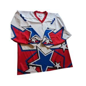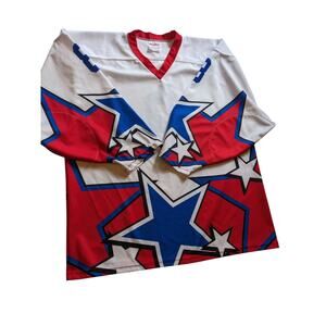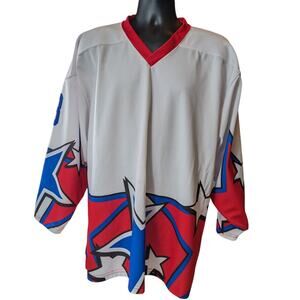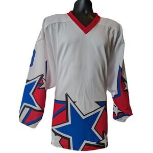Projoy Hockey Jersey #8 Adult Large White Red Blue Stars Graphic Canada Oversized Vintage