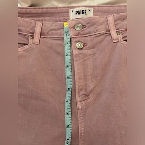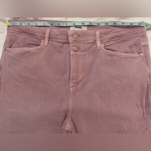 Paige Cindy straight jeans, high rise, raw hem, faded rose color, size 33
