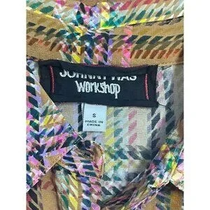 Johnny Was Workshop 100% Silk Long Sleeve Button Front Shirt Small Multicolor