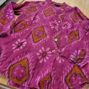 Bitte Kai Rand Batik Dyed Pink Double Breasted Button Blouse 18" Pit 2 PIT Small
