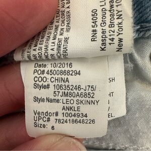 Anne Klein Jeans Light Blue Stretch Denim Leo Skinny Ankle Size Missy 6