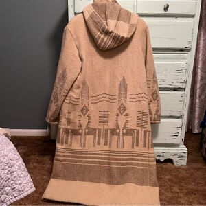 Vintage Woolrich Beige and Brown Hooded Knit Coat. Aztec/giraffe pattern.