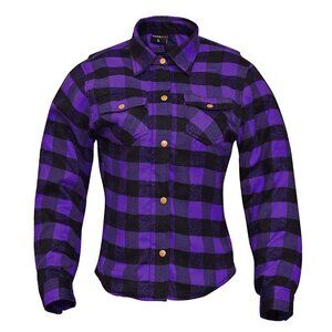 RIDERACT® Women's Motorcycle Shirt Road Series in a stunning purple and black checkered color scheme is made with high-quality flannel fabrics, reinforced with Aramid fiber and comes with complimentary CE standard Armors set. This Women's Motorcycle Shirt is perfect riding gear for a casual road trip, street riding and touring when you want to feel comfortable yet protected on your bike.