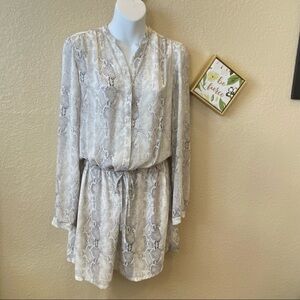 Hilary Radley long sleeve shorts romper white and grey snake skin print small