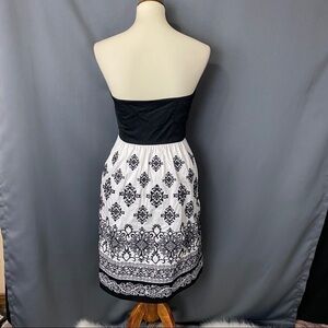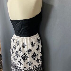 Gorgeous Black House White Market strapless dress with detailed black embroidery. dress was only worn once in excellent condition except a small brown stain as pictured in the last photo