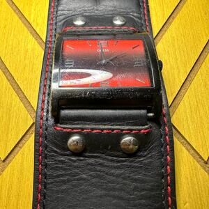 Crafted for the modern woman, this Guess wristwatch combines functionality with a touch of casual elegance. The adjustable genuine leather band, offered in a striking blend of red and black, ensures a comfortable fit while complementing the sleek rectangle watch shape. The black bezel adds a subtle contrast, enhancing the timepiece's visual appeal.