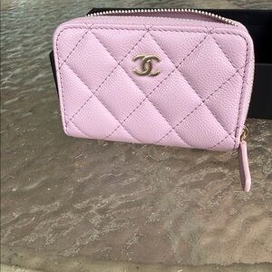 🌹HOST PICK🌹Chanel quilted wallet in pink. Features a zip-around design with a logo accent. Cavier leather, light pink, rare