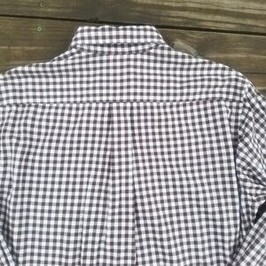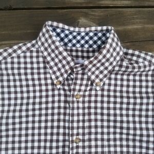 Brooks Brothers brown and white checkered button-down long-sleeve shirt