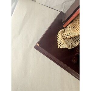 This beautiful porcelain doll comes with a small piece of paper in front of her hand as a certificate of authenticity. She also has some small scratches on the wood in certain places that are fully visible in the photos. Please keep in mind that this item is not completely new but is in very good condition. Any questions or concerns you may have about this, please let me know through messages.