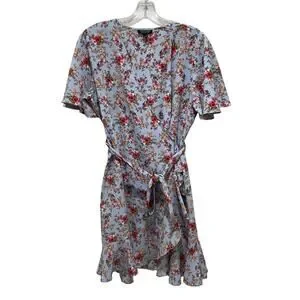 Topshop Confetti Floral Wrap Tea Dress Light Blue Multicolor Size 6