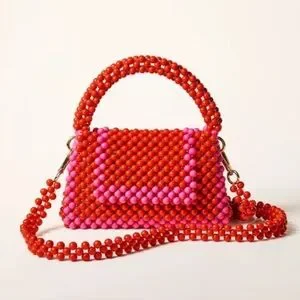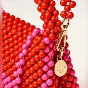 Sold out everywhere! Limited edition pink and red beaded crossbody bag, removable strap, plastic beaded bag.