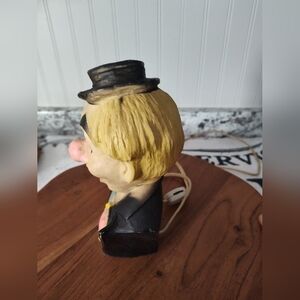 Add a touch of whimsy to your space with this vintage plastic lighted clown head bust night light. Measuring 8 inches in height and 4 inches in length, this medium-sized night light features a colorful, painted finish and a corded electric power source. As a collectible item, this night light is perfect for fans of cartoons, TV & movie characters, and circus themes.