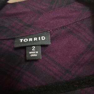Torrid Womens Plus Size Purple and Black Button Down Plaid Shirt EUC 18-20
