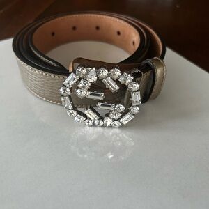 Add a touch of glamour to your outfit with this elegant gold belt, featuring stunning crystal embellishments. Perfect for any occasion. It has been shortened(made a size smaller)