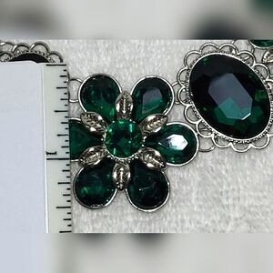 Indulge in the allure of emerald-colored faceted stones complemented by elegant silver-tone accents!
