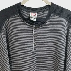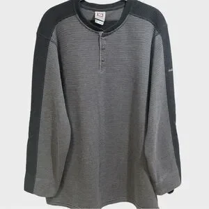 Avalanche 3 Snap Front Gray Blue Striped Thermal Long Sleeve Shirt Siz…