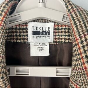 Vintage Fay Leslie Blazer Womens Plaid Size 6P Brown Jacket
