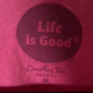 Embrace a playful vibe with this Life Is Good long sleeve tee in a vibrant pink hue, featuring a charming dog graphic on the front. Crafted from a soft cotton blend, it offers a relaxed fit for everyday comfort. In Excellent Condition Size Medium