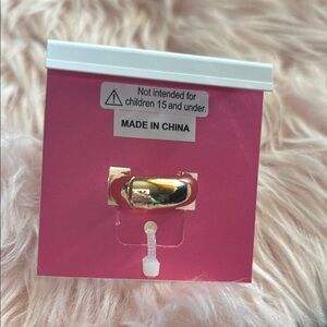 Charming heart-shaped ring with pink glitter and red accents. Features a playful design.