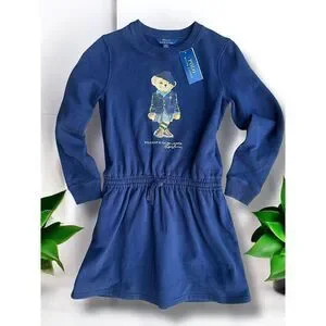 NWT, Girls Ralph Lauren Navy Sweatshirt Polo Bear Dress Size 12-14