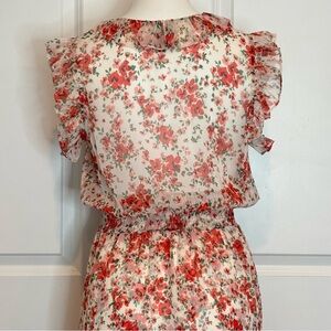 MISA Los Angeles Kidada Poppy Allover Ruffle V-neck Sleeveless Slit Maxi Dress M