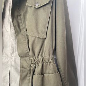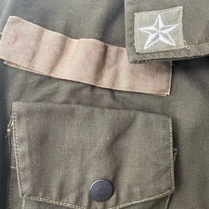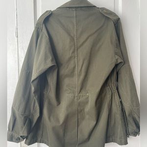 Cool vintage military jacket. Perfect for that oversized look. Cinches at waist, multiple pockets, star patches, Velcro name tag. In amazing condition.