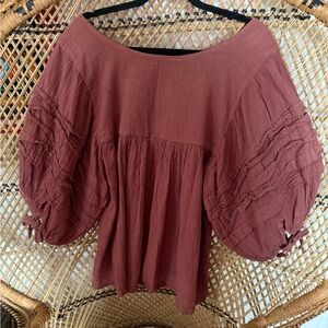 Vintage 1970s Mexico Cotton Gauze Balloon Sleeve Babydoll Blouse M