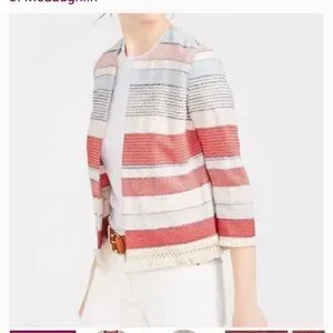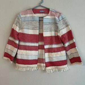 J. McLaughlin Red and Blue Fringe Cardigan Sweater