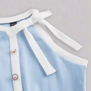 MOD Women's Color-Blocked Halter Top With Front Buckle Decoration And Rim