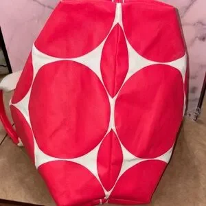 Kate Spade Red Circle Print Canvas Tote Bag with Leather Trim GUC
