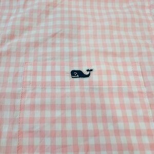 NWOT Vineyard Vine OTG Performance M Long Sleeve Shirt Gingham Pink Flamingo and White Gingham Plaid
