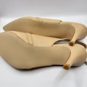 Womens Pumps Size 6.5 Tan Kitten Heels Pointed Toes Stiletto Sling Back Wedding