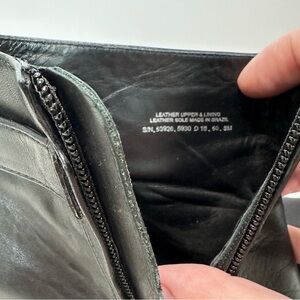 Sleek black wedge ankle boots with a stylish buckle detail. Perfect for any occasion.