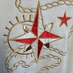 Lucia Women's Sz Med Red White Tunic Sweater Nautical embroidery embellished