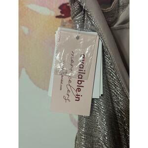 Perfect for formal occasions, this wow-worthy sheath dress is crafted with sleek shining metallic fabric, with a draped halter neckline and rouching at the waist. A dramatic skirt slit adds a sexy detail.