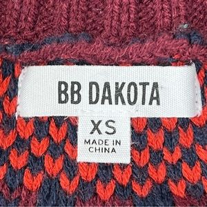 BB DAKOTA Sweater Play Flairisle Pattern Knit Raglan Long Sleeves Red Cr…